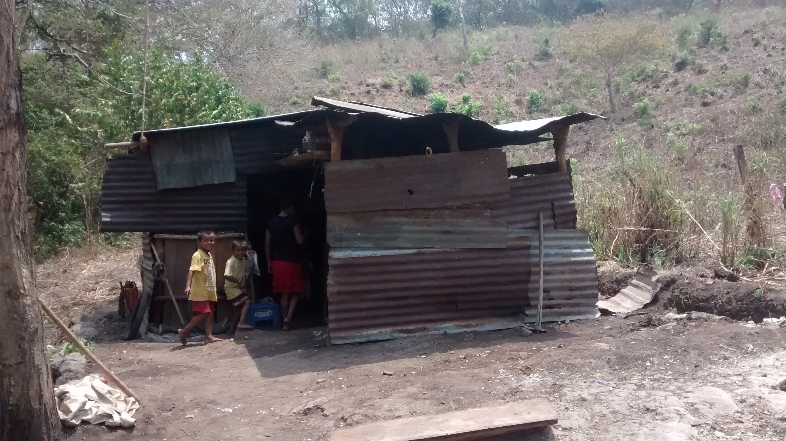 We went to the town of Guacamayas in the state of Santa Rosa, the Municipality of Cuilapa.  Guacamayas is located off the paved road, about an hour’s trip using four by four in low gear.  By the time you got there, you were both “shaken and stirred”.  Four years before a storm had partially destroyed the school in the village and since that time the kids, about 30 in total, had had no schooling.  We had been told that there was no electricity, but we found that a line had been put up to the “center” of the houses just before our trip down.  It passed by the school site, but wasn’t connected.  About 50% of the homes had some electricity, but anyone living a ways from the line was still “off the grid”.